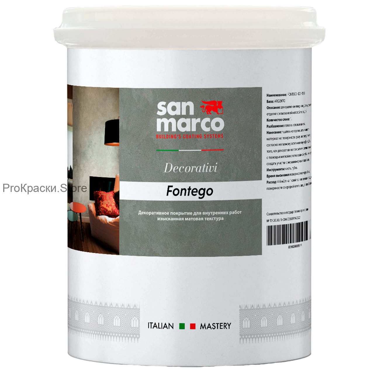 Fontego – краска с матовой текстурой и большой цветовой палитрой. Подходит для рельефных стен, нивелирует мелкие дефекты. Отсутствие отблесков от освещения не искажает оттенок, создает впечатление большей ровности обработанной поверхности. Легко наносится, хорошо пропускает воздух, поступающий из внутренних пластов стен. Гармонирует с другими текстурами, что дает возможность получать особый эффект при оформлении интерьера разных стилей.