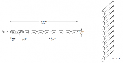 Орнаменты изготовлены в результате двух операций: изготовление профиля из полистирола высокой плотности методом экструзии; после затвердевания профиля- грунтовка слоем акриловой краски. Орнаменты представляют собой строительные детали, элементы декоративной отделки помещений, размером L:2600 x W:249 x H:13 мм, применяются для украшения стен, потолков, используются для декорирования стен.